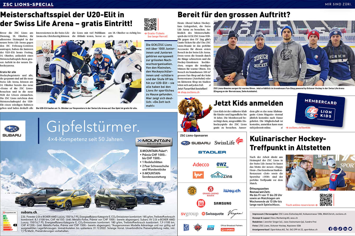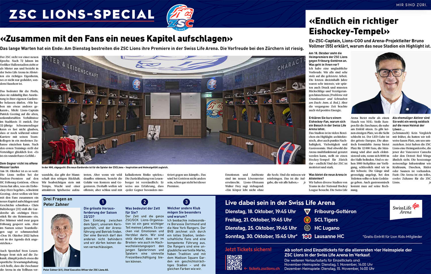 Produkte und Angebot mit spannenden und emotionalen Geschichten erzählen und Ticketverkauf pushen. Erscheint zwei- bis dreimal jährlich als Beilage im "20 Minuten" (Region Zürich).
