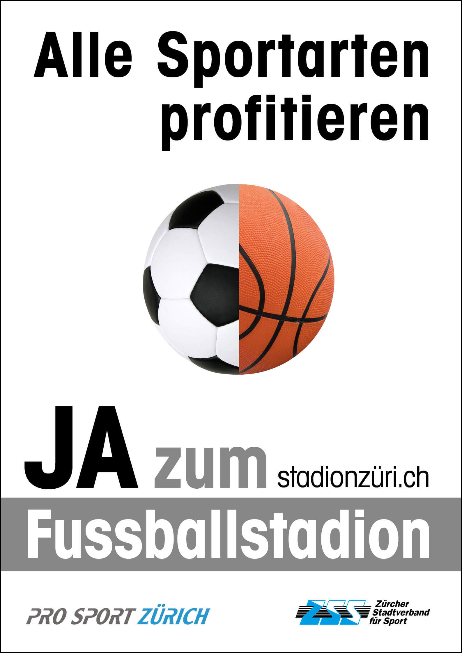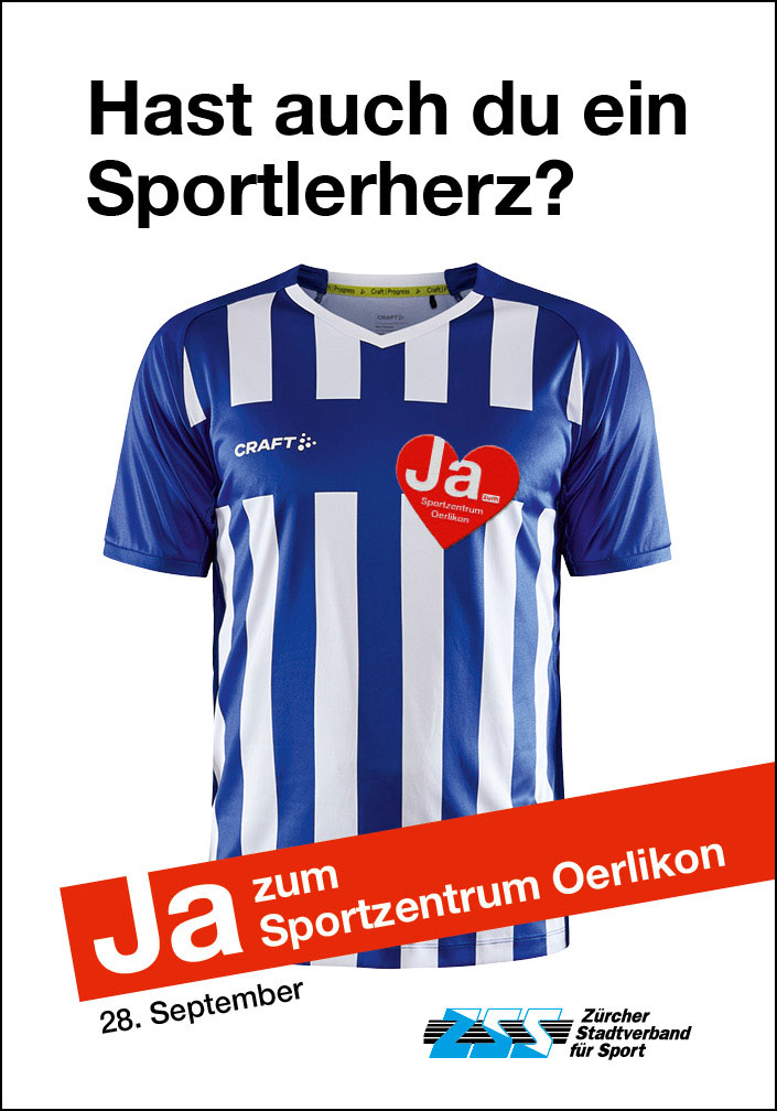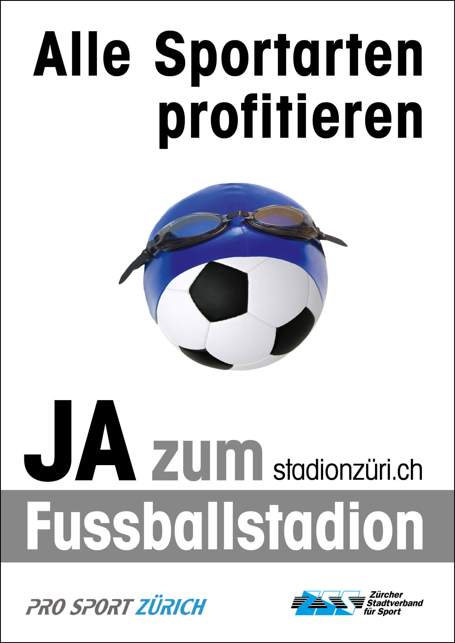 Abstimmungsparolen "Ja zum Sportzentrum Oerlikon" und "Ja zum Fussballstadion" bei Stadtzürcher Bevölkerung bekanntmachen. Plakataushang als Teil der Informationskampagnen - insbesondere bei der sporttreibenden Bevölkerung.