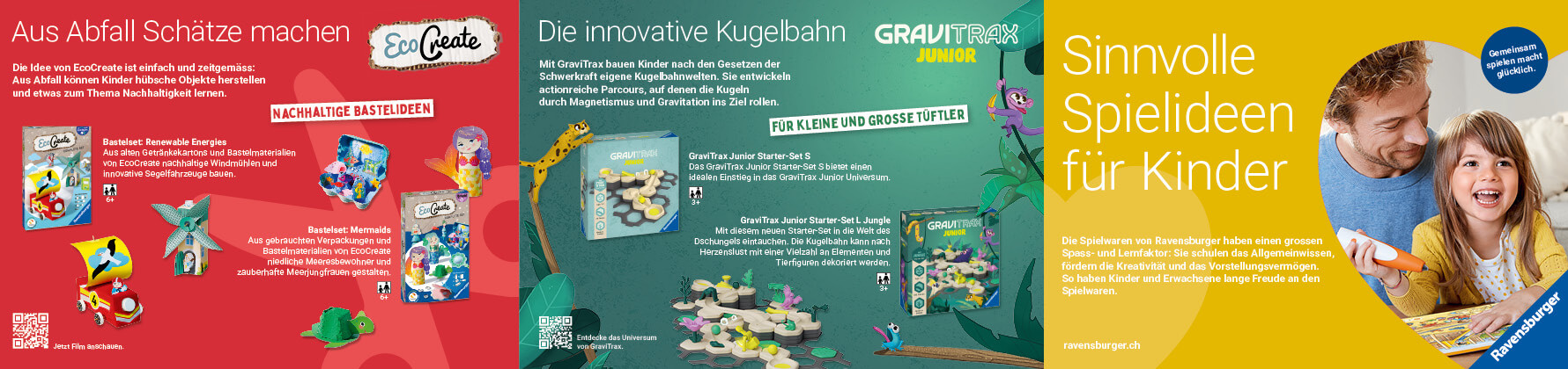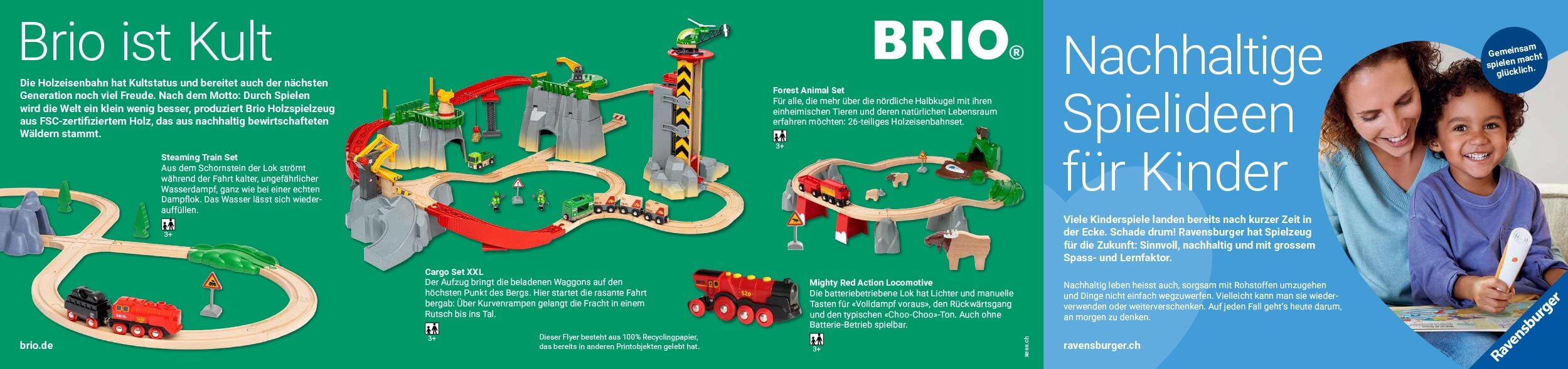Den Brand Ravensburger mit seiner nachhaltigen Unternehmenskultur im Falzflyer positionieren. Bei Versänden des Anyworking-Mom-Concept-Stores beilegen. Die Zusammenarbeit mit der unabhängigen Medienplattform und Community, Anyworking Mom, passt zu den sinnvollen Kinderspielen und -spielzeugen.